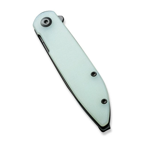 This model has a black stonewash finished D2 blade and natural G10 handle.Â