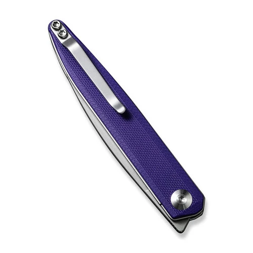 The SENCUT Jubil features a slim and sleek profile with a wharncliffe blade and purple G10 handle scales. An ideal EDC.