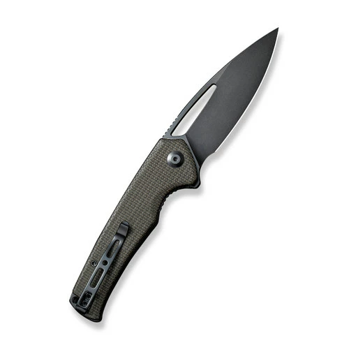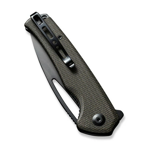 The dark green micarta Sencut Mims is a lightweight flipper knife with a utility design that comfortably locks the knife into your hand with features like a grippy handle, finger groove and jimping. The drop point design of the 9Cr18MoV blade is great for any task you might need it for from box opening to slicing or piercing.Â