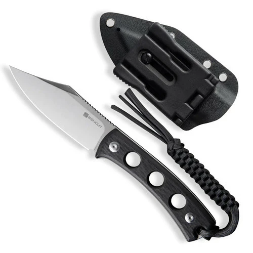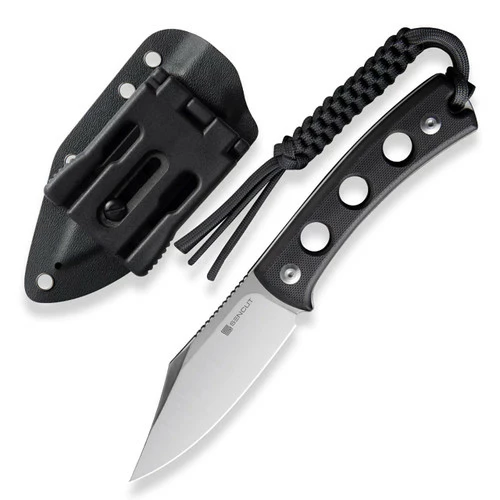 The fixed blade SENCUT Waxahachie is compact and lends itself to piercing and slicing tasks like skinning. The stainless steel clip point blade resists rust and holds a decent edge and the G10 handle is skeletonized to reduce weight. Use the kydex sheath for convenient carry and the paracord lanyard to display your favourite bead.Â