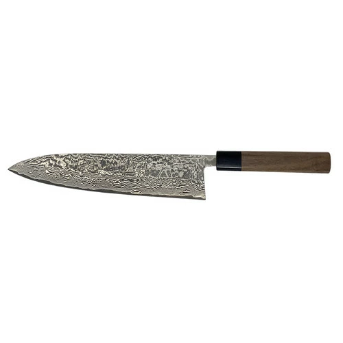 The Shiro Kamo SG2 Gyuto 240mm is a large, Japanese all-purpose chef’s knife. Similar to a Western chef’s knife, a gyuto has a thinner blade which holds a sharper edge. Suitable for all types of veggies, meats, and fish, a gyuto is best utilized with a downward slice, versus any chopping or aggressive cuts. Lightweight and extremely sharp, it is versatile, comfortable, and a pleasure to use.