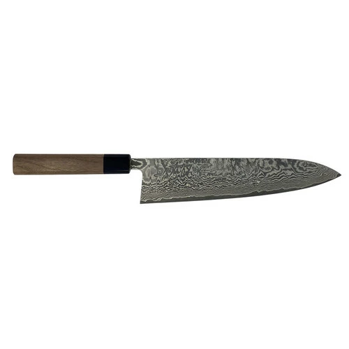 Handcrafted and forged by Japanese blacksmith, Shiro Kamo, this knife is hot forged by hand in SG-2 powder steel, heat treated to 62-63 HRC. The blades are tapered and have a beautiful nickel damascus clad design for a total of 31 layers and the octagonal walnut handles have a pakkawood ferrule. Kamo knives feature consistently even and thin grinds, clean blade finishes and fantastic attention to detail, not to mention the cutting performance to match.