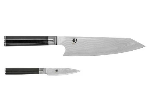 The Shun Classic 2pc Kiritsuke Knife Set – HOK Exclusive (DMS0254) is an exceptional tag team when it comes to kitchen prep. Use the Shun Classic 3.5″ Paring Knife for any small or delicate cutting tasks that require precision or blade control. For bigger tasks where you need an all-purpose blade, use the Shun Classic 8″ Kiritsuke. The kiritsuke is a Japanese multi-purpose blade, traditional used only by executive chefs in Japan. It excels at meat, fish, and vegetables, and with the belly to the Shun Classic Kiritsuke, you can easily and quickly get a rocking cut going to mince ingredients. This set is sold exclusively by House of Knives.