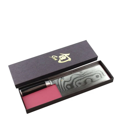 The Shun Classic 7″ vegetable cleaver features a very wide blade similar to a meat cleaver but is much thinner, giving it a razor sharp edge, and is used more like a chef’s knife in day to day prep. The design is perfect for chopping and mincing vegetables, separating florets of cauliflower or broccoli, slicing boneless and soft meats like beef, poultry or fish. It’s also great for flattening garlic bulbs and ginger. The wide blade is also great for transporting food to the pot or wok from the cutting surface.