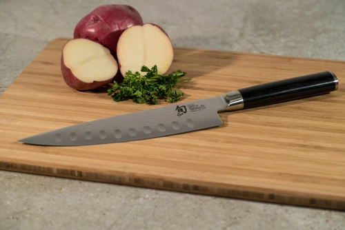 Before you decide which chef’s knife to buy, hold it in your hand to get a sense of the balance, heft, and feel. The knife needs to feel comfortable because it will be the knife you’ll probably use more than any other knife. Try this Shun Classic 8-Inch chef knife to transform your bland and ordinary cutting experience into everyday inspiring! Dimples or hollow-ground Hollow Ground edges on a blade create air pockets between the knife and the food while slicing for reduced friction and suction. This decreases prep time when slicing and cutting because foods slide easier off the blade with less binding and sticking.