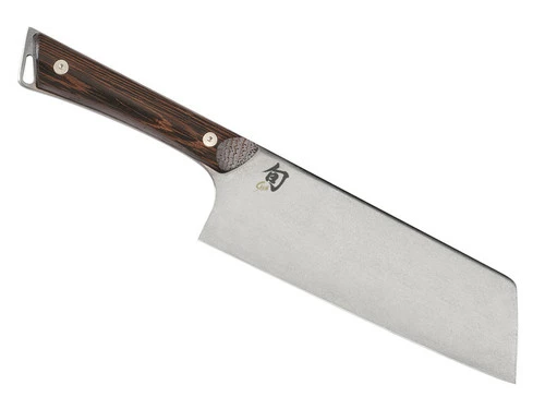 If you’re looking for a bit more power in your kitchen knives, we’ve got a treat for you. The Shun Kanso 7” Asian Utility is a brand new shape for Shun and “utility” is truly a perfect name for it. As part of the Kanso line, not only does it have the beautiful, simplistic aesthetic, but it also has a more durable steel than other Shun lines. The AUS10A steel is slightly more forgiving Japanese steel, so you’ll be able to smash garlic, slice through butternut squash, and process large amounts of vegetables for stir fry in no time at all. The Kanso Asian Utility is a blend between a nakiri (an Asian vegetable knife) and a cleaver, but without the heft of knives you would use to cut through bone.