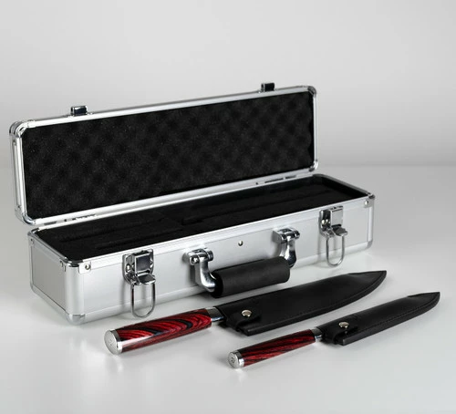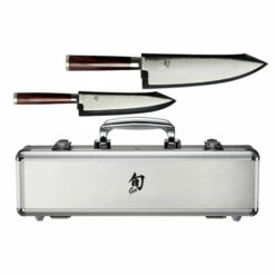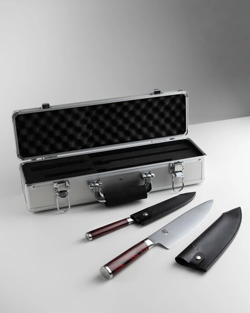 - Includes a beautiful metal case and custom-fitted leather sheaths with embossed Shun logo for storage and/or safe transportation.