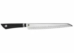 The Shun Sora 9″ Bread Knife is part of the exciting Shun Sora line that provides exceptional handcrafted Shun quality at an amazing price. Sora uses Shun’s proprietary Composite Blade technology to bring together a VG10 san mai cutting edge with a Japanese 420J stainless steel upper. This technology puts high-performance material exactly where it’s needed—on the edge. The two blade sections are laser cut, then fit together like pieces of a jigsaw puzzle. Braze welding permanently joins them. The attractive wavy pattern at the joint is based on traditional Japanese sword hamon lines.