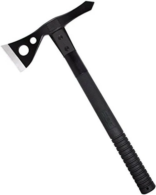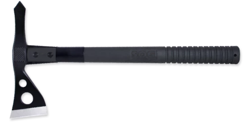 Based on the Vietnam Tomahawk, the SOG Tactical Tomahawk is an extreme evolution of the original which was considered one of the more unusual weapons of its day. Today there is a real need for a versatile tool for breaching operations, excavation, obstacle removal, extraction, and other utility applications. The 420 stainless steel head with Hardcased coating is mounted to the fiberglass reinforced nylon handle with heavy-duty bolts and a steel ferrule for stability. Side hammer checkering insures precise placement when pounding. Carried in a nylon sheath this is a universal tool for modern man.