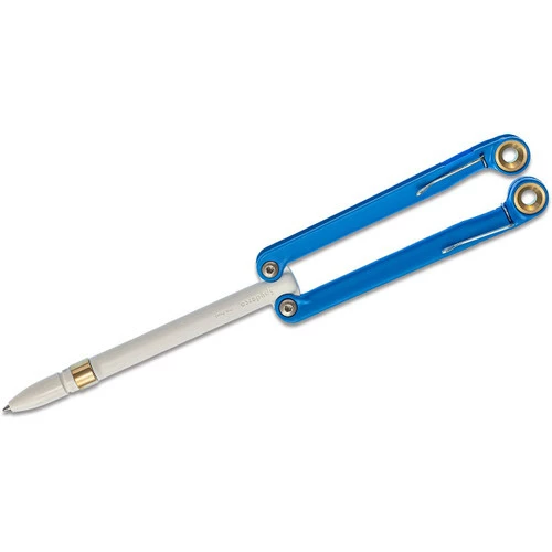 The white and blue Spyderco BaliYo pen is stronger, smoother, faster and more fun than ever before. Its custom-formulated polymer components are also more durable than previous generations and are available in several vibrant color combinations. Improved spring-steel clips on both handles allow the BaliYo to be clipped securely in a pocket, but are also easily removable. It provides safe unlimited creative motion anytime, anywhere, even while sitting. 100% USA-made using high-performance materials and manufacturing. The BaliYo is 4.25 inches tall and weighs in at 0.85 oz. It uses a Fisher® Space Pen® cartridge that writes underwater, in freezing cold, boiling heat, at any angle, and even upside down.