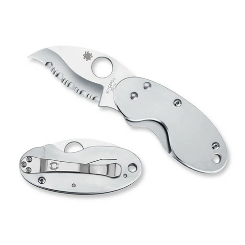 We’ve incorporated this design into a rounded handle with a serrated reverse “S” shaped blade. The distinctive blade shape curves into a keen precision tip for intricate/detailed cutting. Made of VG-10 stainless steel, the blade is hollow-ground and when folded closed creates a rounded package that rides nearly invisibly in the pocket. The pocket clip carries right-handed tip-down but also attaches to a tie or makes a fashionable money clip.
