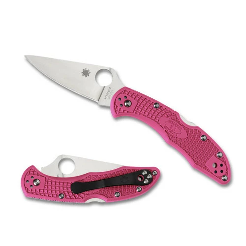 Since its introduction 30 years ago, the Spyderco Delica has been the platform for dozens of different combinations of blade steels, handle colors, and handle materials. This remarkable rendition of the Delica 4 Lightweight combines a full-flat-ground blade crafted from American-made CPM S30V stainless steel with a brilliant pink handle. The injection-molded handle includes Spyderco’s signature Bi-Directional Texture pattern for a non-slip grip and a black four-position pocket clip configurable for all carry positions.