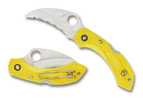 The Dragonfly 2 Salt Hawkbill combines the proven design of the Dragonfly 2 platform, the incredible corrostion-resistant qualities of H-1® steel, and the extreme cutting power of a hawkbill blade. Like an animal’s claw, hawkbill blades pierce with the tip and collect the object being cut, drawing it into the concave edge to generate highly focused cutting power. This makes them the perfect tools for cutting netting, line, and other fibrous materials. When rendered in H-1 steel—an advanced nitrogen-based alloy that is practically immune to rust—and supercharged with an aggressive fully serrated SpyderEdge™, the Dragonfly 2 Hawkbill’s blade cuts with an authority far beyond is compact size.