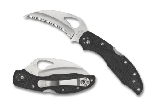 The BY22 byrd folder has a Hawkbill-shaped blade. This distinctive curved cutting tool’s claw-like tip overwhelms material in its cutting path. As the hook pulls what is being cut against and in contact with the sharpened edge, the hook winds around material stopping it from sliding off the tip. The Hawkbill blade’s shape is rooted in the commercial fishing industry, its profile ideal for downward, sweeping cutting performed at arm’s length directed away from the body.