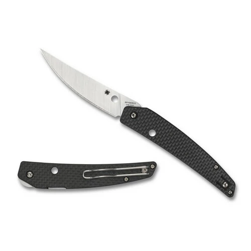 The ultra-slim Spyderco Ikuchi is a radically different approach to pocketknife form and function. Designed by Paul Alexander, a Ph.D. in Mechanical Engineering and a lifelong knife enthusiast, the Ikuchi (pronounced ee-koo-chee and named after a mythical Japanese sea monster) has an elegantly curved handle crafted with full, skeletonized stainless steel liners and stunning carbon fiber/G-10 laminate scales.