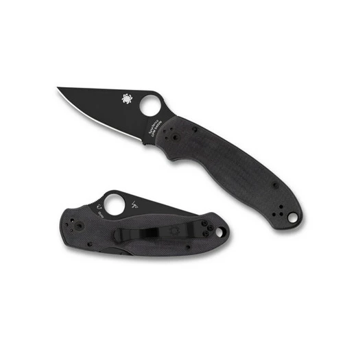 The Para 3 folding knife packs all the time-tested features and functionality of Spyderco’s iconic Para Military™ 2 into a smaller, easier-to-carry format. For tactical end users who are concerned about light discipline or those who just prefer the look of a black blade, the Para 3 is now available with a tough Diamond Like Carbon (DLC) blade coating. This low-profile coating is permanently bonded to the premium CPM® S45VN® stainless steel blade, which features a full-flat grind, a PlainEdge™ cutting edge, and a fully accessible Trademark Round Hole™ for swift, ambidextrous, one-handed opening. The blade is supported by a high-strength Compression Lock® mechanism nested within the handle’s textured black G-10 scales. Its easy-to-clean, open-backed handle construction reduces the knife’s weight, while providing a solid platform for a four-position hourglass clip that supports left and right-side tip-up or tip-down carry. Like the blade, the clip and all assembly screws are blackened with non-reflective coatings.
