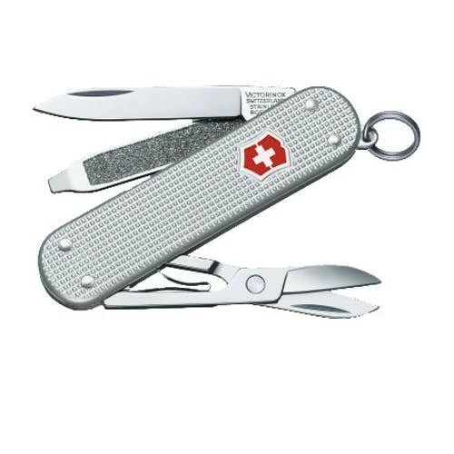 The Swiss Army Knife Classic Alox is everything you need in a small pocket knife. It features 5 essential tools for everyday life, within the ribbed aluminum/alox scales. Perfect on your keychain, or in your purse or backpack.