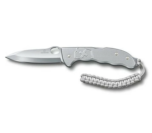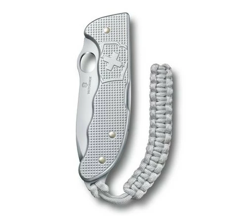 Built for discovery and wanderlust, the latest incarnation of the Hunter Pro adds sophistication and slick looks into the mix. Featuring the ribbed Alox scales synonymous with our Pioneer collection, this design adds a more tactile, multi-dimensional finish. The curved clip slots seamlessly onto the layer behind the scale for easy attachment to any garment. And the spring-integrated lanyard hole and woven silver paracord pendant prove it’s refined, yet highly robust. This elegant Swiss-made knife with 4 functions is perfect for everyday adventures in the great outdoors or the city. It includes an extra-strong locking blade for one-handed use, clip and paracord pendant.Â