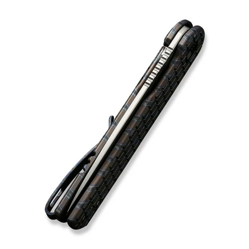 Slender, elegant, and eye-catching, the limited edition Charith from WE Knife Co. features a classic design made with premium materials. A pattern is milled into the titanium handle and the drop point blade deploys effortlessly with a flipper and locks up safely with a frame lock. Â