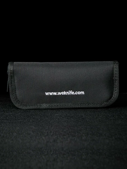Carry your favourite WE knife in this pouch featuring zippered tough nylon construction, Designed for one folding knife, it includes a microfiber polishing cloth and two WE Knife Co. stickers.Â