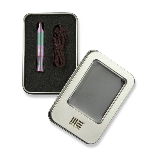 Survival and style – this emergency whistle from WE Knife Co. is built to last with the strength and toughness of brightlycoloured milled and anodized titanium. While it weighs only a fraction of an ounce, the A-05 puts out an incredible 120 decibels and is a great addition to any pack, keyring, or survival kit. Â