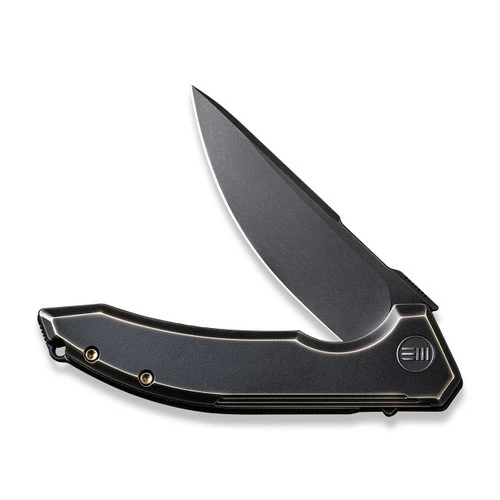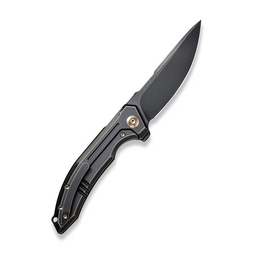 Elegant yet strong, the Quixotic folding knife from WE Knife Co. is a pocket-friendly size and weight but does not compromise on durability. The full titanium build is robust and rugged and the slight curve with a natural finger guard fits comfortably in hand. The drop point blade is made from premium CPM 20CV steel and features jimping, an aesthetically pleasing notch in the spine, and choil. The blade flips open with superior action thanks to the bearing pivot and the frame lock locks up tight.Â