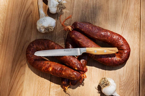 Although the serrated edge of the Wusthof Amici All-Purpose Serrated Utility Knife is inspired by the juicy, sun-ripened tomatoes that southern Italy is famous for, consider this nimble knife an effective slicer for almost anything in your kitchen — from fresh and aged cheeses to cured meats, fruits, vegetables, soft dinner rolls, and crusty baguettes. Â
