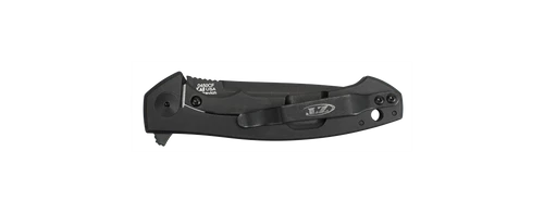 Picking this knife up, you’ll immediately notice the surprising light weight of this knife. Comfortably engage the flipper, and the matte black blade snaps open with a satisfying quickness, thanks to the KVT ball-bearing system. This 3.25” blade is DLC-coated, which stands for Diamond-Like Carbon. This coating lends to your knife a low friction point, a high hardness, and a high resistance to corrosion, so you’ll favour this knife for a long time. This DLC protection also extends to the 0450CF’s titanium liner lock and handle, giving the knife strength and resilience to most environments.