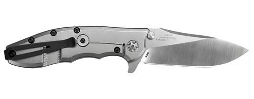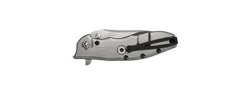 The knife opens with a flipper and moves out of the handle on our smooth KVT ball-bearing opening system. A washer with caged ball bearings surrounds the pivot and makes opening the knife nearly frictionless; just pull back on the flipper and add a roll of the wrist and the 0562CF is ready for action.