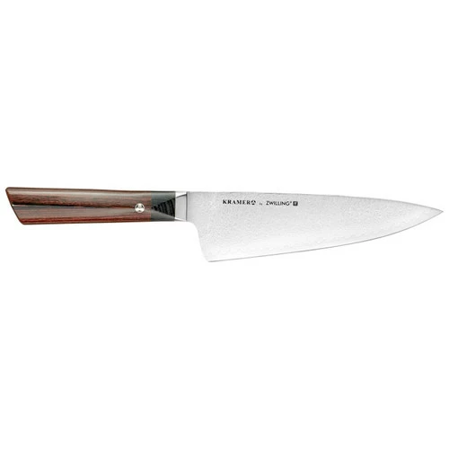 Forged from remarkable expertise, the Kramer by ZWILLING Meiji knife series is a collaboration between ZWILLING J.A. Henckels and Bob Kramer, the first Master Bladesmith to specialize in kitchen cutlery. The potent core of FC61 fine carbide stainless steel is protected by 100 layers of nickel and stainless steel. Beneath its distinctive exterior, Kramer’s distinctive etched ladder Damascus pattern provides added durability. Thanks to an innovative, ice-hardened process, the FRIODURx2 blades offer remarkable durability, sharpness, and cutting performance. The ergonomic charcoal Pakkawood handles have a complex curvature that mirrors the palm, ensuring a secure and supremely comfortable grip. Exquisite to hold and behold, the handles feature a decorative center pin handcrafted in Kramer’s Washington workshop. Kramer by ZWILLING Meiji knives boasts 287 years of ZWILLING engineering prowess, Kramer’s 19 years of forging experience, and 7 centuries of traditional Japanese craftsmanship. These unparalleled knives are built to last a lifetime. The Chef’s Knife is the workhorse of the kitchen. Whether chopping, slicing, or dicing meat and vegetables, the broad, sturdy blade and comfortable, balanced size will quickly become the go-to knife for everyday tasks.